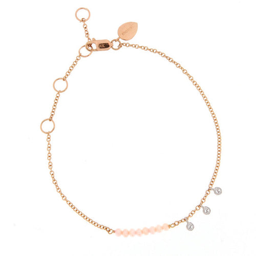 Pink Opal Bead Bracelet with Diamond Bezels