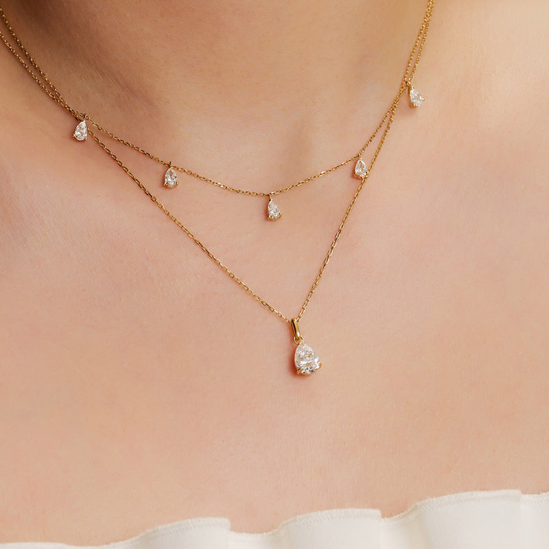 Amp up the sparkle factor and elegance with any neck mess with this pear shaped lab grown diamond solitaire necklace.